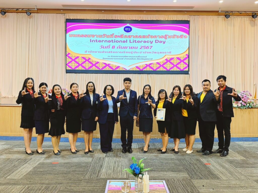 วันที่ 8 กันยายน 2567 นายพีรพล ประลอบพันธุ์ ตำแหน่ง ครู รักษาการในตำแหน่งผู้อำนวยการศูนย์ส่งเสริมการเรียนรู้ระดับอำเภอนายูง พร้อมด้วยบุคลากร สกรระดับอำเภอนายูง ร่วมมหกรรมงานวันที่ระลึกสากลแห่งการรู้หนังสือ international Literacy Day ณ ห้องสกาม มนต์คราคอนเวนชั้นฮอลล์ โรงแรมสยามแกรนด์ อำเภอเมือง จังหวัดอุดรธานี โดยมี นางคณิดา ราษฎร์นุ้ย รองผู้ว่าราชการจังหวัดอุดรรานี เยี่ยมชมนิทรรศการ Best Practice ของ สกร ระดับอำเภอ เป็นประธานในพิธีเปิดงานพร้อมทั้งอ่านสารนายกรัฐมนตรี เมืองในโอกาส “วันที ระลึกสากลแห่งการรู้หนังสือประจำปี 2567 และ นายวรินทร์ วิรุณพันธ์ ผู้อำนวยการสำนักงานส่งเสริมการเรียนรู้ประจำจังหวัดอยุครรานี นำ สนยสารผู้อำนวยการใหญ่องค์การยูเนสโก และมอบเกียรติบัตรให้กับสถานศึกษาและบุคลากรในสังกัดประเภทต่างๆ
