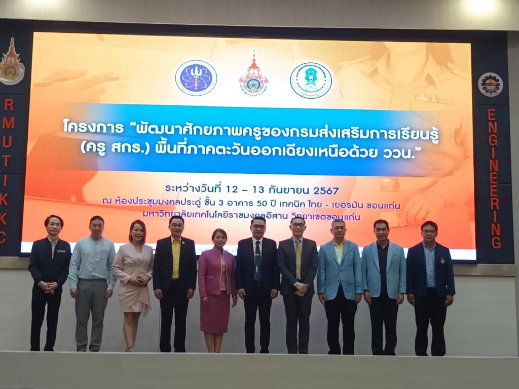 (ครู สกร.) พื้นที่ภาคตะวันออกเฉียงเหนือ ววน. ระหว่างวันที่ 12-13 กันยายน 2567 ณ มหาวิทยาลัยเทคโนโลยีราชมงคลอีสาน วิทยาเขตขอนเเก่น โดยมีนายชัยพัฒน์ พันธุ์วัฒนสกุล รองอธิบดีกรมส่งเสริมการเรียนรู้ เป็นประธานในพิธีเปิดการอบรม